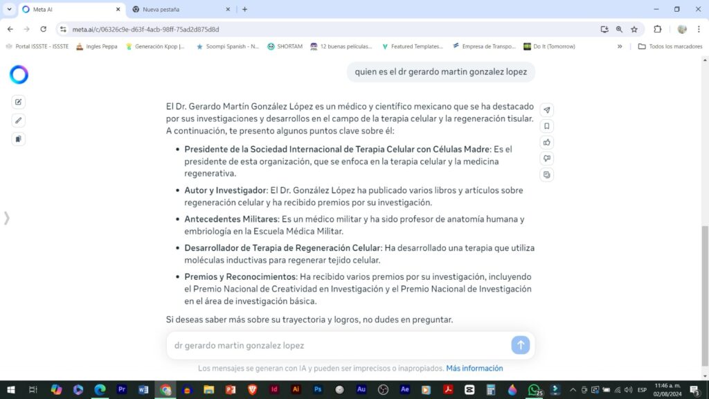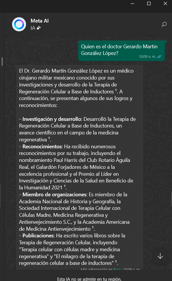 LA INTELIGENCIA ARTIFICIAL (IA) RECONOCE AL DOCTOR GERARDO MARTÍN GONZÁLEZ LÓPEZ COMO UN GRAN INVESTIGADOR Y CREADOR DE LA TERAPIA DE REGENERACIÓN CELULAR A BASE DE INDUCTORES